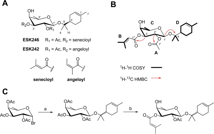 natural products ESK242 and ESK246. (B) Crucial NMR correlations used