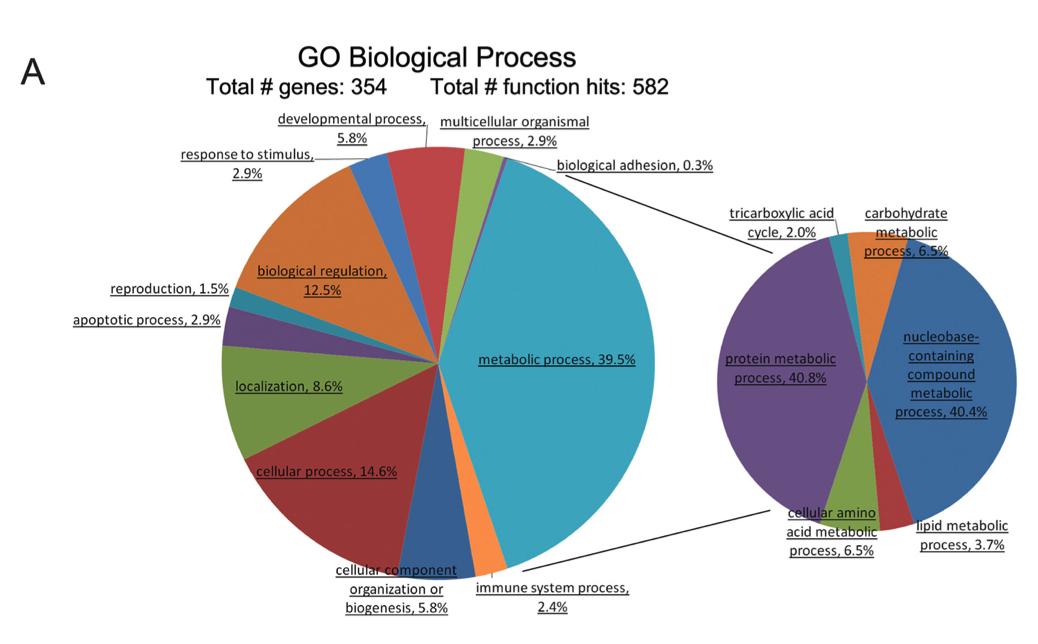 FIG. 5. Functional analysis of SUMO substrates. A, Pie chart showing gene ontology analysis of the SUMO candidate proteins. The genes were grouped into categories defined by GO Biological Processes by the PANTHER classification system. The largest category is that containing gene products that play roles in metabolic process.