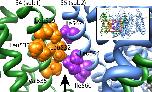 Figure 9. Homology model of the Kv11.1 channel. View parallel to the membrane of an amplified region of a Kv11.1 channel homology model created using the Kv1.2/2.1 chimera crystal structure (Long et al., 2007) as a template, according to the alignment shown in Fig. S3. The amplified region is indicated by the boxed region of the entire four-subunit homology model shown in the inset. Hydrophobic residues on the S4 helix (Leu529, Leu532, and Val535) of one subunit (sub1; shown in green, with residues colored orange) face toward hydrophobic residues on the S5 helix (Ile560, Leu564, and Ile567) of the neighboring subunit (sub2; shown in blue, with residues colored purple). The arrow represents a cavity filled by lipid in the Kv1.2/2.1 crystal structure. |
