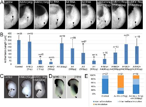 Figure S4. Effect of Xbra injection on involution. (A) A4, EphA4-MO; Xbra, Xbra