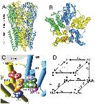 Panel A: A side-on ribbon depiction of a structural homology model for α1β3γ2L GABAA receptors based on the glutamate-gated chloride channel (GluCl) from Caenorhabditis elegans