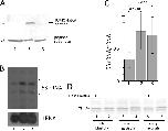 FIGURE 4. Depletion of SUMOylation activity prevents repression of oocyte 5 S rRNA genes. A, SUMO activation (E1) activity in extract prepared from Gam1-injected embryos was measured by Western blot analysis using a 25-kDa SUMO substrate peptide. Lane 1, peptide alone; lane 2, peptide incubated with extract from water-injected (control) embryos; lane 3, peptide incubated with extract from Gam1-injected embryos. The reactions in lanes 2 and 3 also contained E2 (Ubc9) enzyme, SUMO1, and ATP. Positions of molecular weight markers (in kilodaltons) are indicated. B, one-cell embryos were injected with [32P]UTP and TFIIIA mRNA, which activates transcription of the oocyte-type genes after the midblastula transition, or Gam1 mRNA. RNA was isolated at early gastrula stage, and three embryo equivalents were analyzed by electrophoresis/autoradiography. Lane 1, control embryos injected with [32P]UTP only; lane 2, injection with TFIIIA mRNA (7 ng); lane 3, injection with Gam1 mRNA (5 ng). C, autoradiographs for four experiments were scanned, and 5 S rRNA was quantitated relative to tRNA using ImageJ software. The ratio is given in arbitrary units. Error bars indicate mean ± S.D. D, one-cell embryos were injected with Gam1 mRNA (lanes 1, 3, and 5) or water (lanes 2, 4, and 6). Whole cell extract was prepared, and four embryo equivalents were analyzed by Western blot developed with TFIIIA antibody. |
