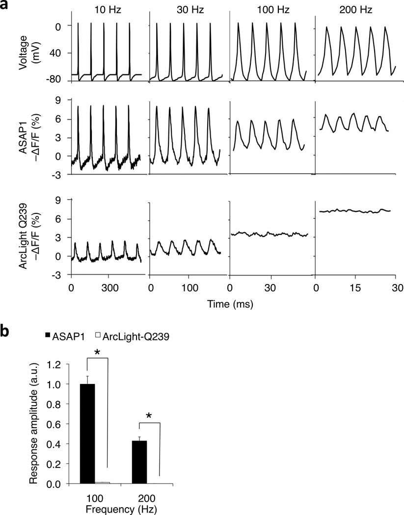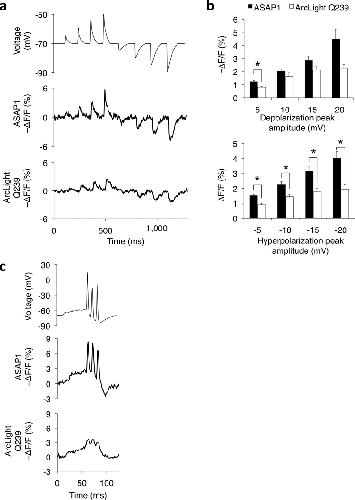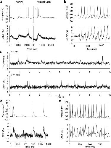 High-fidelity optical reporting of neuronal electrical activity with an ultrafast fluorescent voltage sensor.