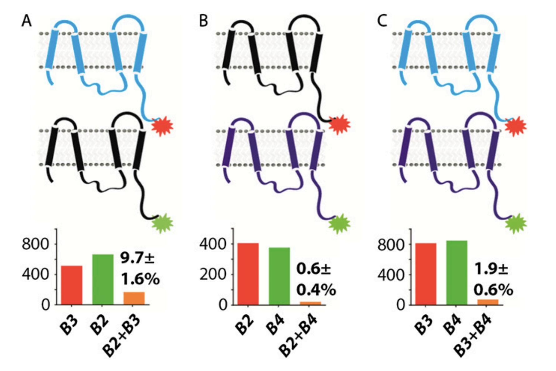 Fig. S4. Single-molecule colocalization analysis of coassembly of the rest of the bestrophins. hBest2 tagged with EGFP at C terminus coexpressed with hBest3–