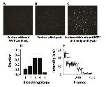 glass surface with anti-EGFP antibody alone (A), lysate alone (B), and anti-EGFP antibody and lysate both (C). (D) Average frequency distributions of number of