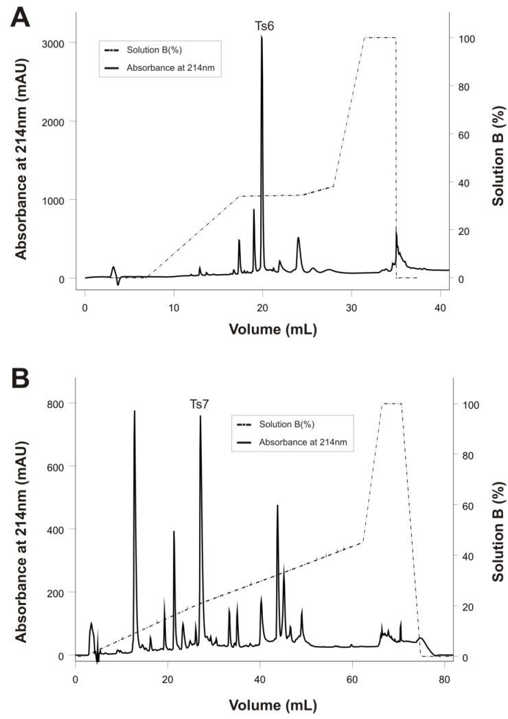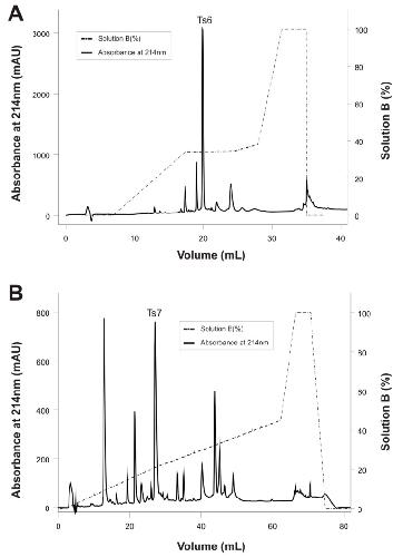 Electrophysiological characterization of Ts6 and Ts7, K⁺ channel toxins isolated through an improved Tityus serrulatus venom purification procedure.
