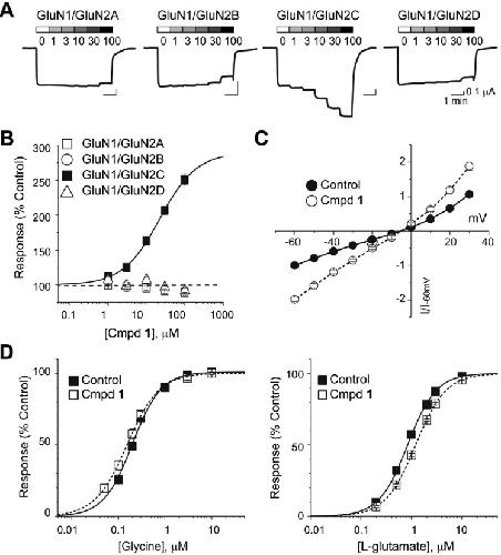 Acker, Mechanism for noncompetitive inhibition by novel GluN2C/D N-methyl-D-aspartate receptor subunit-selective modulators. 2011, Pubmed
