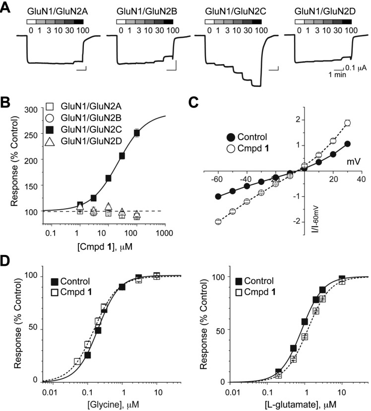 Design, synthesis, and structure-activity relationship of a novel series of GluN2C-selective potentiators.