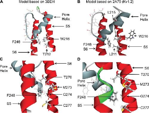 Lees-Miller, Interactions of H562 in the S5 helix with T618 and S621 in the pore helix are important determinants of hERG1 potassium channel structure and function. 2009, Pubmed