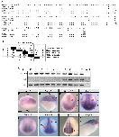 Fig. 1. Maturin predicted protein sequence, conservation and expression during Xenopus laevis embryonic development. (A) Maturin protein sequence alignment. Predicted amino acid sequence of X. laevis Maturin aligned with putative orthologs from other vertebrates. Periods indicate amino acid identity, while gaps (dashes) were inserted to optimize the alignment. The 29-residue Maturin Motif is indicated by a red over-line. Aspartic (D) and glutamic (E) amino acids in the acidic domain are labeled with asterisks. The four positions at which nonconservative changes of highly acidic amino acids have taken place are indicated with a caret (^). (B) Amino acid identity among vertebrate Maturins. Percent identity shared with X. laevis Maturin is shown. Genbank accession numbers are: X. laevis BC045253, H. sapiens NM_152793 (C7orf41), M. musculus BC042507 (2410066E13Rik), G. gallus XM_003640720.1, D. rerio NM_001144806. (C) Detection of maturin and pax6 transcripts using RT-PCR. Gene specific primers were used to detect maturin and pax6 transcripts in total RNA isolated from eggs (E) and whole embryos of the indicated developmental stage. Histone h4 was used as a loading control. (DâK) Maturin expression in developing embryos. Whole mount in situ hybridization was used to detect Xenopus laevis maturin expression. Developmental stage is indicated above each panel. (E) Stage 9 embryo cut open with a razor following whole mount in situ hybridization. An, animal; Veg, vegetal; b, blastocoel; A, anterior; P, posterior; np, neural plate; ef, eye field; nc, neural crest; D, dorsal; V, ventral; sc, spinal cord; ov, optic vesicle; e, eye. Scale bars = 400μm. |