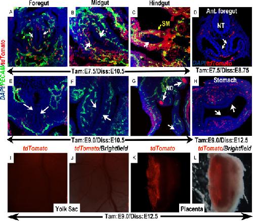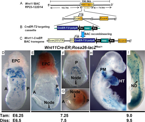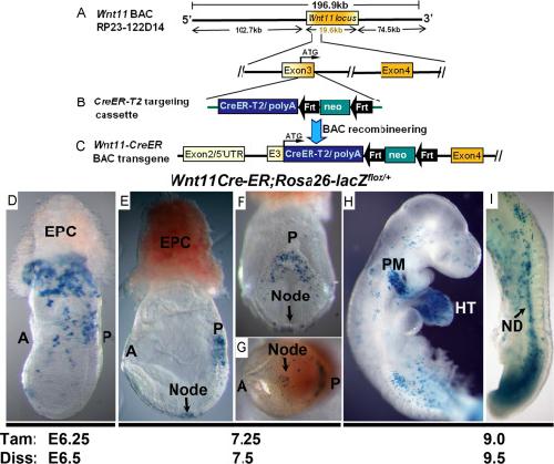 Mapping the dynamic expression of Wnt11 and the lineage contribution of Wnt11-expressing cells during early mouse development.