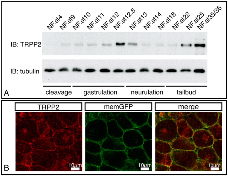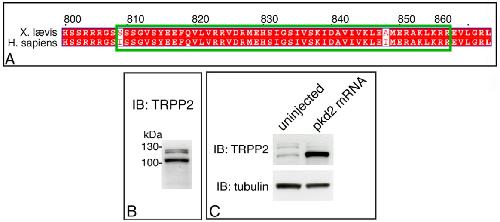 laevis and human TRPP2 sequence used to generate the anti human TRPP2 antibody. (B). The