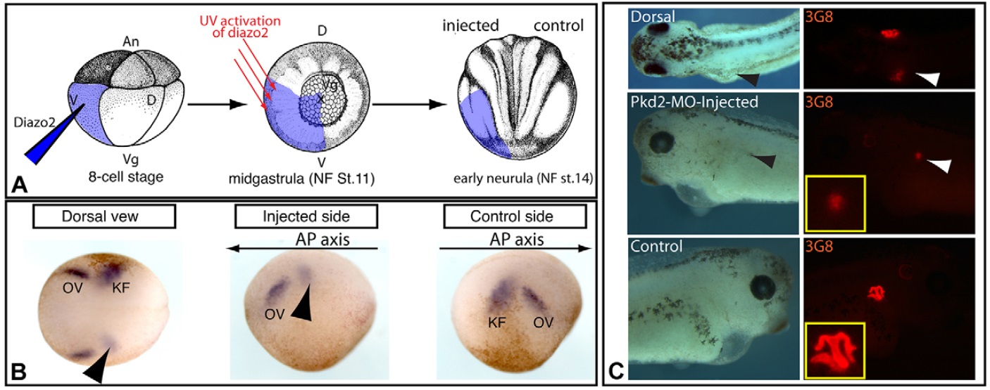 MO-Pkd2 was injected into the two left blastomeres at the 4-cell stage, and embryos cultured