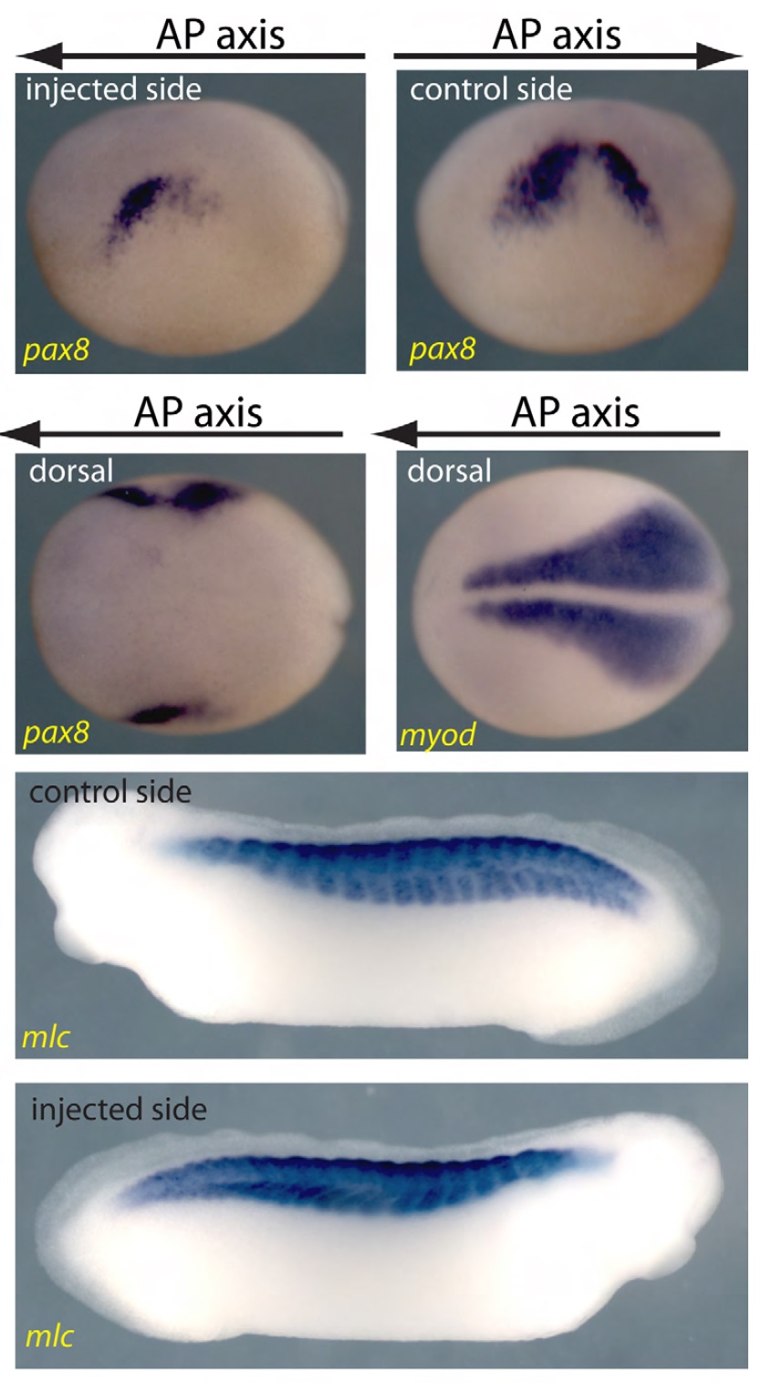 control side shows a strong inhibition of pax8 expression in the kidney