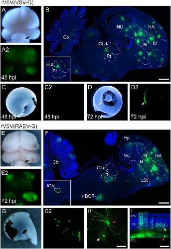 Beier, Vesicular stomatitis virus with the rabies virus glycoprotein directs retrograde transsynaptic transport among neurons in vivo. 2013, Pubmed