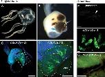 Figure 10. Recombinant VSV vectors can infect invertebrate organisms. (A,B) Image of the box jellyfish, Tripedalia cystophora (A). The visual system is comprised of four sensory structures, or rhopalia (white arrow in (A). Image in (B) shows higher magnification of rhopalium in (A). There are six eyes located on each rhopalium, two of which are camera‐type lens eyes (blue arrow, B). The vitreous space of the lower lens eye was injected with rVSV(VSV‐G) (injection site indicated by needle in B) and the infection was monitored for a total of 7 dpi. (C,D) Photoreceptors in all 10 injected animals expressed Venus by 2 dpi. (C) Lateral view of entire rhopalium, with orientation as in (B), shows Venus expression in the photoreceptors of the lower lens eye (C, boxed area). Green = Venus, blue = DAPI. (D) Higher magnification of boxed region in C showing rVSV(VSV‐G) infection in retinal photoreceptors of the everted lens eye (dashed lines). Images taken at 2 dpi. (E–G) Recombinant VSV vectors could also infect Drosophila melanogaster. (E) Uninfected flies were nonfluorescent, while those infected with rVSV‐Venus(VSV‐G) (F) or rVSV‐GFP(RABV‐G) (G) showed fluorescent protein expression. Images taken 1 dpi. Scale bars = 5 mm in A; 100 μm in B,C; 50 μm in D; 0.5 mm in E–G. |