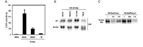 Komekado, Glycosylation and palmitoylation of Wnt-3a are coupled to produce an active form of Wnt-3a. 2007, Pubmed
