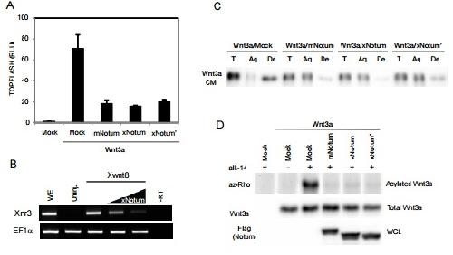 Flowers, A zebrafish Notum homolog specifically blocks the Wnt/β-catenin signaling pathway. 2012, Pubmed