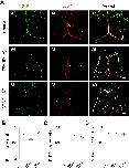 (A). A cartoon showing the tectum at stage 47. The right lobe of the brain was transfected with CMV::eGFP using method of unilateral brain electroporation. The eGFP-expressing cells within the tectum show a characteristic radial glial cell morphology with triangular cell bodies (arrow head), long processes (asterisk) and large end feet (arrow). Scale: 50 μm. (B). The majority of eGFP-expressing cells in the optic tectum are also BLBP-positive. Right panel: a higher magnification image of the right tectum, Scale: 50 μm. (C-D). Xenopus laevis were incubated with BrdU for 2 hours and co-labeled with anti-BrdU and anti-BLBP antibodies at stage 46 (C) and stage 49 (D), respectively. Six representative sections were shown for stage 46 (C1-C6: BrdU staining; C7-C12: BLBP staining and C13-C18: BrdU and BLBP merged) and stage 49 (D1-D6: BrdU staining; D7-D12: BLBP staining and D13-D18: BrdU and BLBP merged), respectively. Arrows indicate the end feet of RGs. Data represent the average cumulative cell counts for 8 sections per brain (Note: remaining figures show one representative section per condition). The shape of the tectal brain was outlined with a dotted line. The counting area was outlined with a white square (C4 and C10). (E). The zoom in images from the square area (C4, C10 and C16) was shown. Arrows indicate cells co-labeled with BrdU (green) and BLBP (red). Scale: 100 μm. (F-G). Quantification of BrdU- and BLBP-positive cells in whole-mount tecta showed decreases in the numbers of BrdU- and BLBP-labeling cells at stage 49 compared to stage 46 (BrdU: St 46, 288.3 ± 24.7, N = 3, St 49, 78.0 ± 7.4, N = 5; BLBP: St 46, 371.3 ± 28.4, N = 3, St 49, 105.2 ± 8.2, N = 5; ***p<0.001). (H). The majority of BrdU-labeling cells are colocalized to BLBP-positive cells at stage 46 and 49 (St 46: 80.6% ± 3.5%, N = 3, St 49: 80% ± 2.3%, N = 5, p = 0.72). |