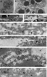 Figure 9. Ultrastructure of cleft contacts. Cells after 20 min of reaggregation. (A) Pair of mesoderm (large yolk platelets) and ectoderm cells (small platelets). (B) Alternating large gaps and narrow contacts between cells of ectodermâmesoderm pair. (C and D) High-magnification views of regions of close (C) and intermediate contacts (D), respectively, of a cell pair. (E and F) Cleft contact ECM stained with lanthanum/alcian blue. ECM stretching across gaps (small arrows) or in patches on cell surface and in large gaps (dashed arrows) is shown. (G and H) Contacts between normal ectoderm and PAPC-MOâinjected prechordal mesoderm cells, ECM stained with lanthanum/alcian blue. e, ectodermal BCR; m, prechordal mesoderm; l, large gaps; i, intermediate contacts; c, close, adherens junctionâlike contacts; sc, super-close contacts; large arrows, points of divergence of membranes at end of intermediate contacts. |