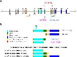 Fig. 3. Strategy for screening mutations in the pax6 locus edited by two pairs of TALENs targeting exon 7 and exon 9 simultaneously. (A) Schematic drawing of targeting regions, only showing exon 7 (blue) and exon 9 (magenta) for simplicity (not to scale). Small colored arrows indicate different primers for genomic PCR of exon 7 and exon 9 (each sequence is shown on the bottom, from 5â² to 3â²). Different combinations of primers can amplify other possible junction regions created by deletion or inversion between exons 7 and 9 as schematically shown. (B) A representative gel pattern of genomic-PCR bands from an embryo injected with both pairs of TALENs mRNAs. In this specific case, one of the possible junctions representing a 3â² inversion site (where a 3â² piece of exon 7 would have been fused inverted to 3â² piece of exon 9, lane 5) was not detected, but in other cases, we have seen such a band. (C) The genomic-PCR band corresponding to what is shown in lane 2 in (B) from 3 pooled embryos was gel-purified, cloned, and sequenced. The results of 6 clones are aligned. Only regions between two target sites (target-Ls, left target; target-Rs, right target in orange) are shown. Corresponding wild-type sequences are shown on top for exon 7 and on the bottom for exon 9. Multiple 10-kb deletion events were confirmed, and junctions where 5â² parts of exon 7 (blue) fused to 3â² parts of exon 9 (magenta) were seen in the expected cleavage regions (in between left and right targets, indicated by scissors) in both exons 7 and 9, suggesting that 10-kbp deletions were due to cleavages by TALENs and thus both TALENs were functional. (For interpretation of the references to color in this figure legend, the reader is referred to the web version of this article.) |