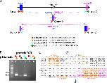 Fig. 3. Strategy for screening mutations in the pax6 locus edited by two pairs of TALENs targeting exon 7 and exon 9 simultaneously. (A) Schematic drawing of targeting regions, only showing exon 7 (blue) and exon 9 (magenta) for simplicity (not to scale). Small colored arrows indicate different primers for genomic PCR of exon 7 and exon 9 (each sequence is shown on the bottom, from 5â² to 3â²). Different combinations of primers can amplify other possible junction regions created by deletion or inversion between exons 7 and 9 as schematically shown. (B) A representative gel pattern of genomic-PCR bands from an embryo injected with both pairs of TALENs mRNAs. In this specific case, one of the possible junctions representing a 3â² inversion site (where a 3â² piece of exon 7 would have been fused inverted to 3â² piece of exon 9, lane 5) was not detected, but in other cases, we have seen such a band. (C) The genomic-PCR band corresponding to what is shown in lane 2 in (B) from 3 pooled embryos was gel-purified, cloned, and sequenced. The results of 6 clones are aligned. Only regions between two target sites (target-Ls, left target; target-Rs, right target in orange) are shown. Corresponding wild-type sequences are shown on top for exon 7 and on the bottom for exon 9. Multiple 10-kb deletion events were confirmed, and junctions where 5â² parts of exon 7 (blue) fused to 3â² parts of exon 9 (magenta) were seen in the expected cleavage regions (in between left and right targets, indicated by scissors) in both exons 7 and 9, suggesting that 10-kbp deletions were due to cleavages by TALENs and thus both TALENs were functional. (For interpretation of the references to color in this figure legend, the reader is referred to the web version of this article.) |