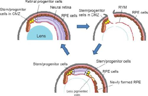 Retinal stem/progenitor cells in the ciliary marginal zone complete retinal regeneration: a study of retinal regeneration in a novel animal model.