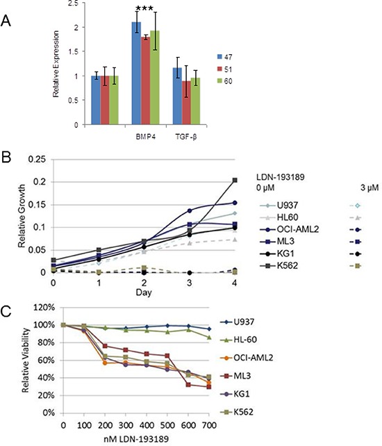 A role for BMP-induced homeobox gene MIXL1 in acute myelogenous leukemia and identification of type I BMP receptor as a potential target for therapy.