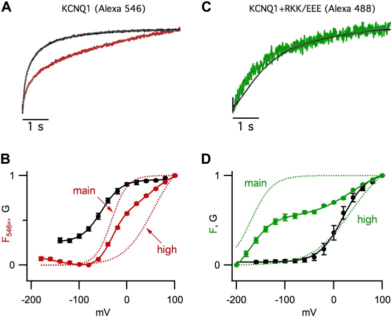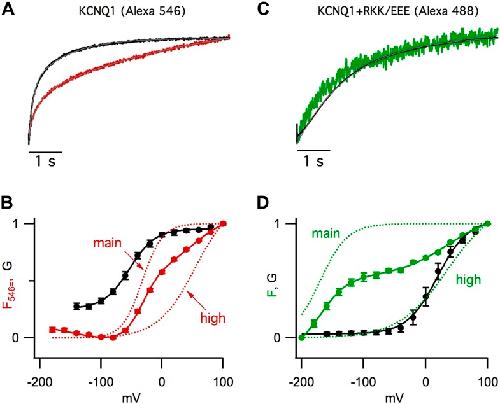 Barro-Soria, KCNE1 divides the voltage sensor movement in KCNQ1/KCNE1 channels into two steps. 2014, Pubmed