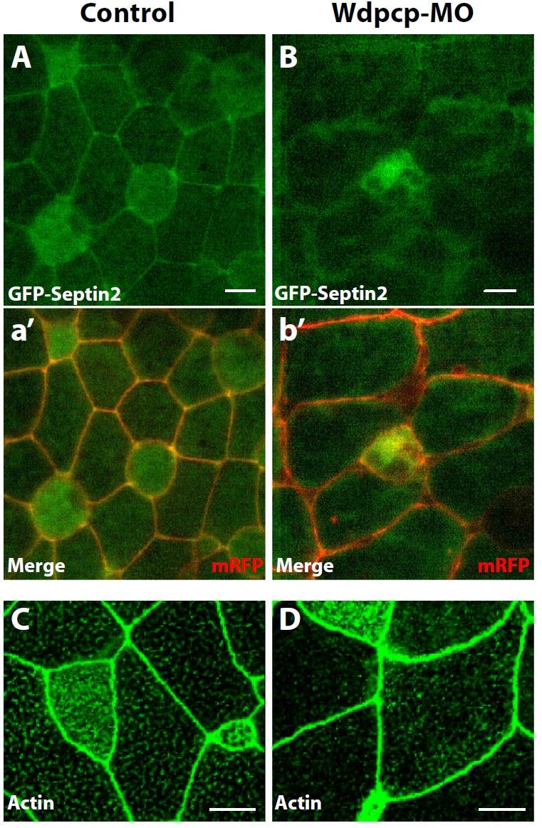 and D) Knockdown of Wdpcp expression did not disrupt cortical actin accumulation.