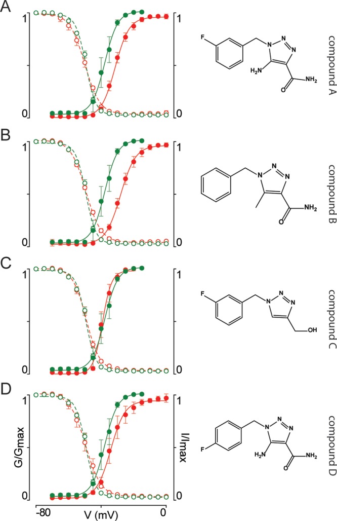 of 100 μM rufinamide derivatives fitted with the Boltzmann equation.