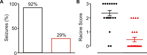 B, there is a 63% reduction in the number of mice exhibiting seizures