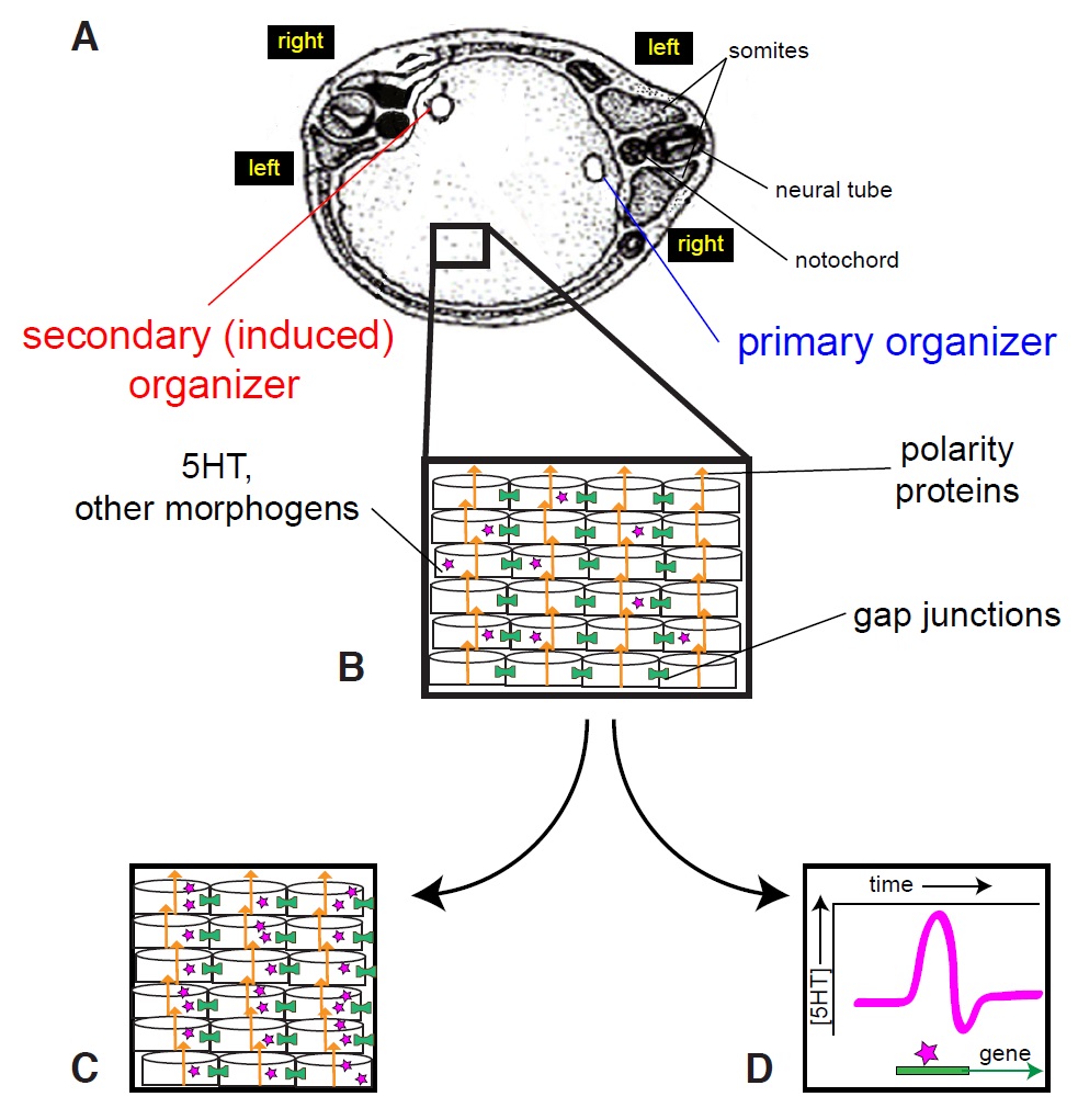 Left-right patterning in Xenopus conjoined twin embryos requires serotonin signaling and gap junctions.
