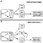 eye. (A) During gastrula/neurula stages of development, Hh signalling controls the specification of both the OS and VR domains by promoting expression of OS (Pax2, Vax1b) and VR (Vax2) genes and repressing expression of DR genes (Tbx3, Tbx5). (B) During optic vesicle stages, the expression domains of Vax2 and Tbx3/5 become less dependent on Hh signalling (dashed lines), which is required to maintain Pax2 and Vax1b expression and proper OS development. At both stages, activation of Hh signalling is likely to depend on the Shh ligand, acting through inhibition of Gli repressor proteins (Gli-R) and increase of Gli activator proteins (Gli-A) [40]. Vax2 was previously shown to self-activate its own expression at optic vesicle stages [29].