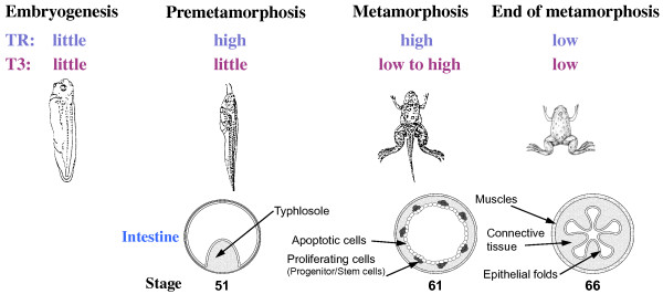 Sun, Expression profiling of intestinal tissues implicates tissue-specific genes and pathways essential for thyroid hormone-induced adult stem cell development. 2013, Pubmed , Xenbase