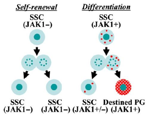 asymmetric distribution of JAK1 mRNA in spermatogenic stem