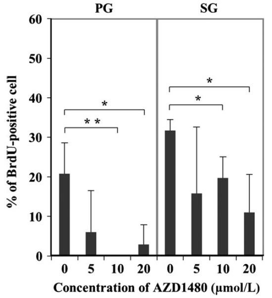 Fig. 4. Effect of AZD1480 on the efficiency of BrdU-incorporation