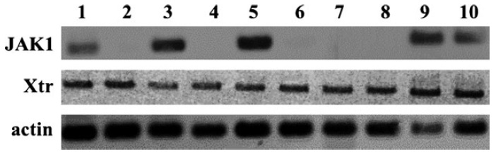 (RTâPCR), the presence of JAK1 mRNA was examined in each