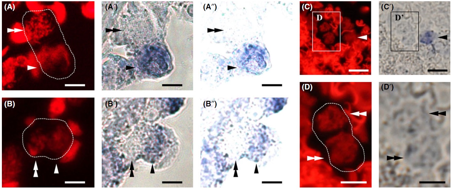 two nuclei having weak stainability with propidium iodide. Scale bars indicate 10 lm in A, Aâ, Aâ, B, Bâ, Bâ, D, and Dâ; 20 lm in C and Câ. |