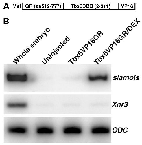protein. (B) Synthetic mRNA corresponding to Tbx6VP16-GR was injected in the animal pole region