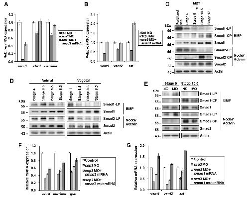 (C) Dynamics of Smad1 and Smad2 phosphorylation during the Xenopus embryogenesis. Embryos were