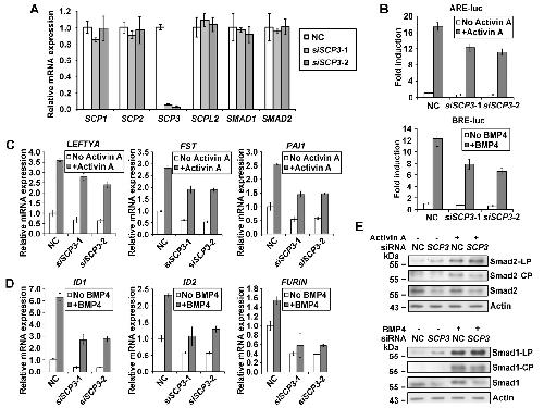 siRNA-1 and cultured for 48 h. After treated with Activin A or BMP4 for 1 h, the cells were collected for