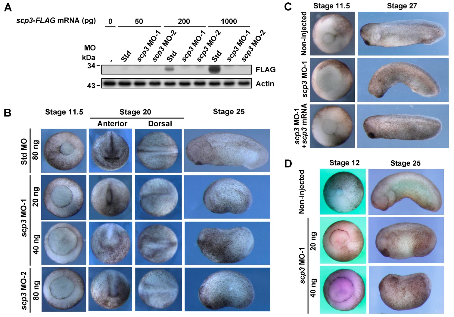 stage embryos were coinjected with 60 ng of std MO or scp3 MO-1 and 1.5 ng of mRNA coding for