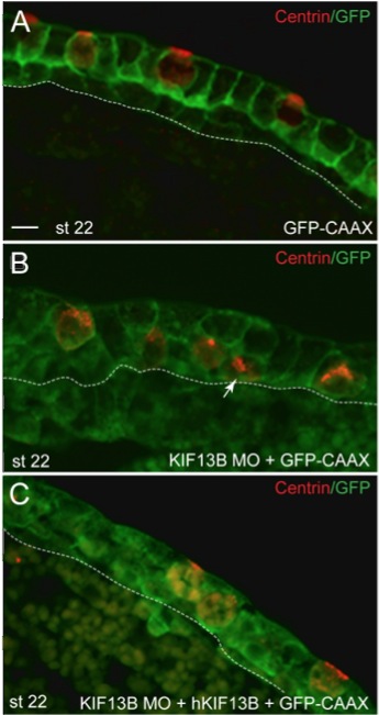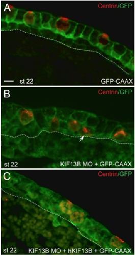 Genes referenced: cfp dvl1 dvl2 kif13b mcc myc pkm prickle3 rab11a tub vangl2