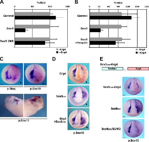 SUMOylated SoxE factors recruit Grg4 and function as transcriptional repressors in the neural crest.