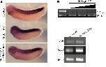 Fig. 1. sh3bgr is expressed in the skeletal muscles and heart tissues. Whole mount in situ hybridization showing that sh3bgr is expressed in the somites and heart at Stage 30 (A), Stage 36 (B). C, D. Sectioned samples shown in (B). E. sh3bgrl is expressed in the presomitic tissue and early cardiac tissue at Stage 23. F. At Stage 32, sh3bgrl is expressed in the pharyngeal arches and the presomitic expression was maintained. |