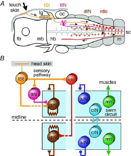 Sensory pathway rostral dorsolateral commissural neurons (rdlcs) respond to head and trunk skin stimulation