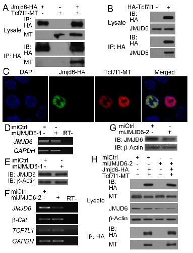 Jmjd6 and Tcf7l1 in HEK293T cells. B, overexpressed Tcf7l1 precipitated endogenous JMJD6 in