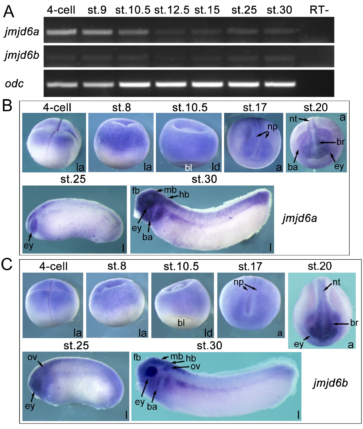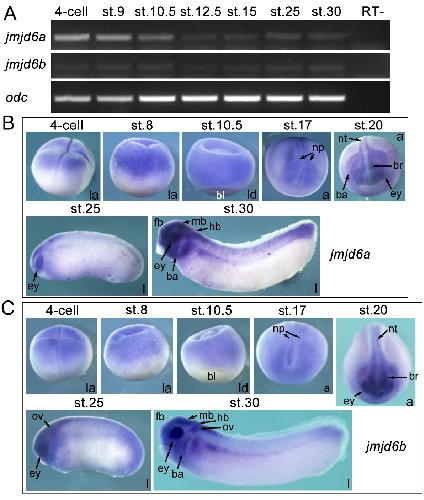 embryogenesis of Xenopus laevis. A, temporal expression of jmjd6a (Accession number: