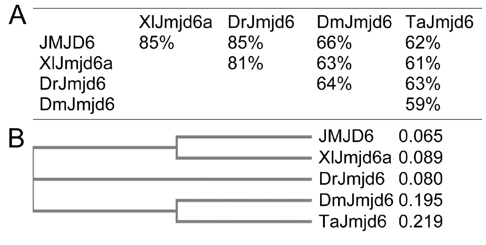 (DmJmjd6. Accession number: NP_651026.1), and in Trichoplax adhaerens (TaJmjd6. Accession